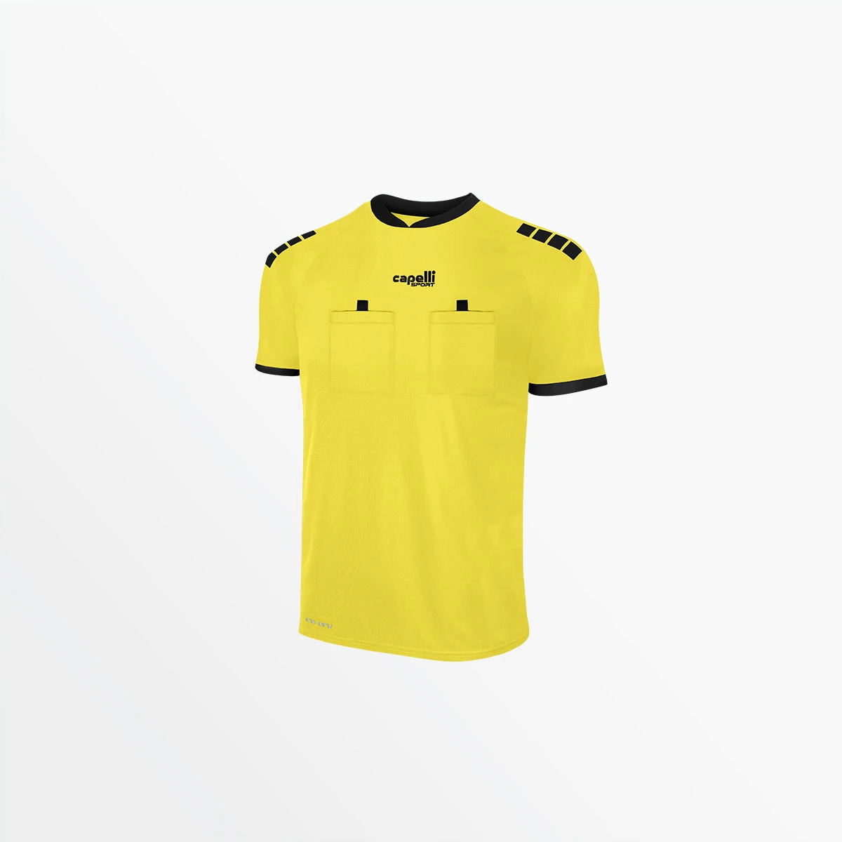 The Capelli Sport Basics Referee Short Sleeve Jersey is designed for elite level officiating in a similar style to professional referee uniforms. Interlock fabric provides durability with contrasting sleeve cuffs and collar. Two front chest pockets give you storage and easy access to your essential items with velcro closures for security.Â